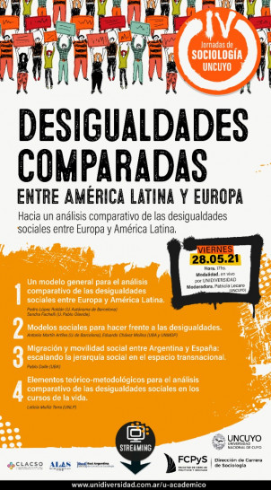17.00 hs. Panel “Desigualdades comparadas entre América Latina y Europa. Hacia un análisis comparativo de las desigualdades sociales entre Europa y América Latina”.